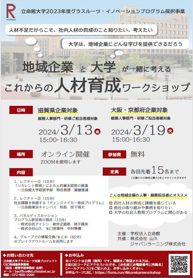 3月13日 立命館大学 人材育成ワークショップ のお知らせ